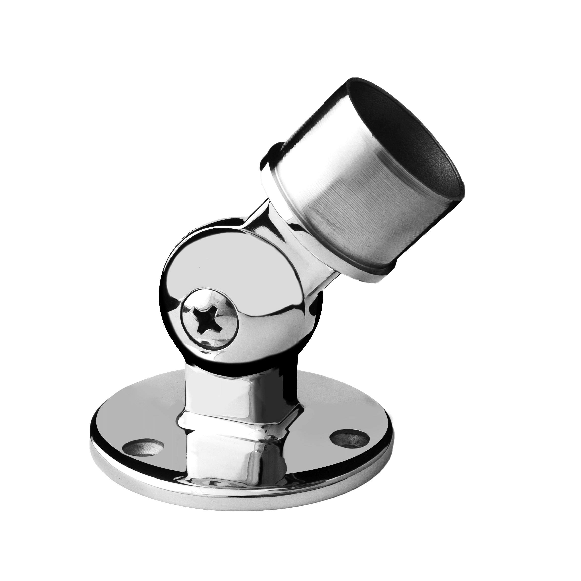 Base articulada de acero inoxidable. Fabricada en fundición. Para tubo de 43mm