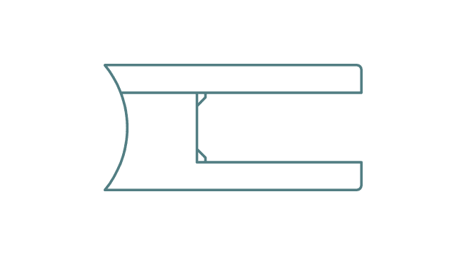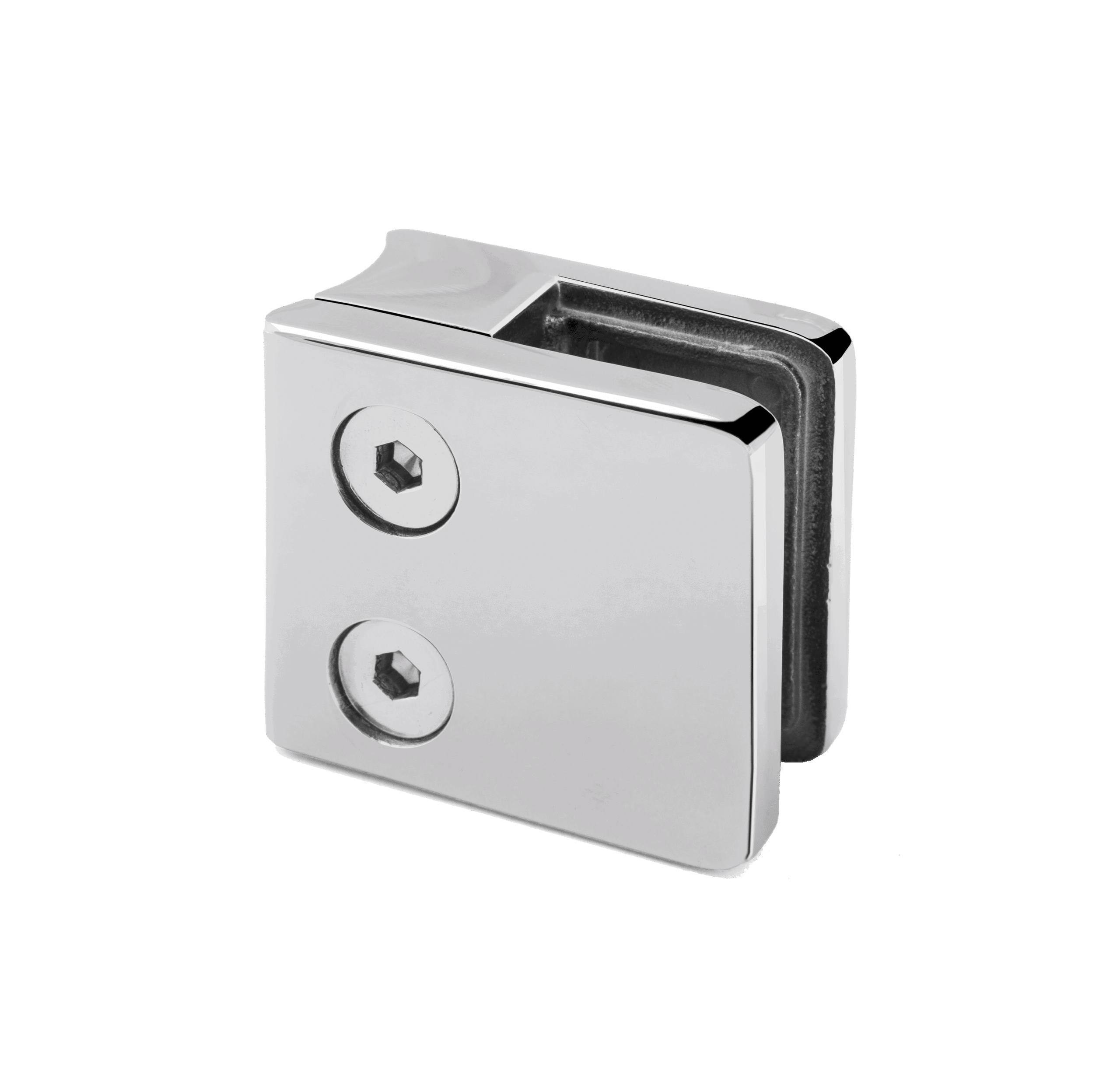 Pinza con forma cuadrada para tubo circular. Diseñada para la optima sujección de laminas de cristal