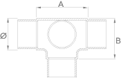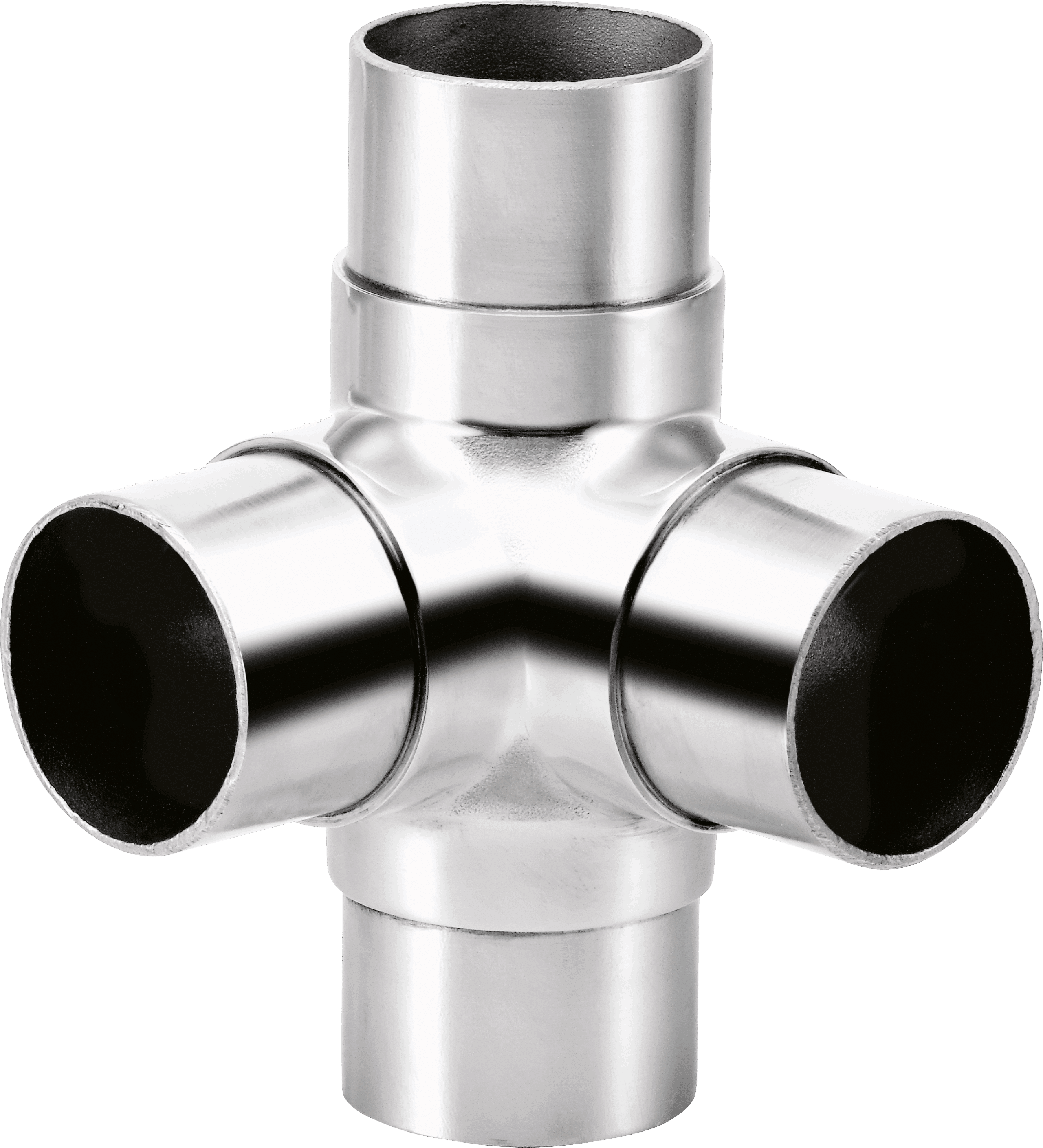Conector con 4 salidas para tubo circular en acero inoxidable. Pieza realizada en fundición.