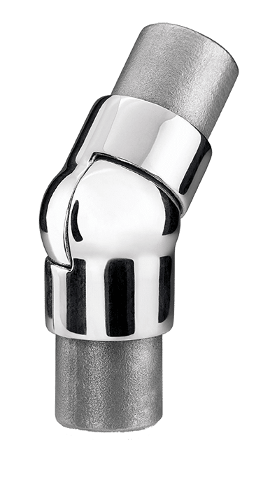 Conector de rótula en acero inoxidable. Pieza realizada en fundición. Para tubo de de 20mm